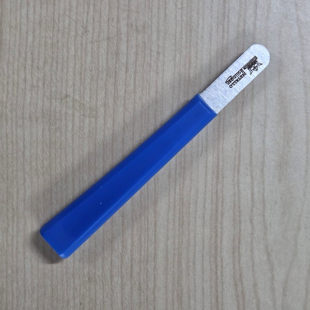 Mes met 40mm lemmet van hoogwaardig C60 staal. De afgeronde punt is om het onbedoeld beschadigen van de plant en vruchten te voorkomen. Het mes heeft een blauw kunststof HACCP heft, zodat het goed opvalt tussen de te verwerken producten.