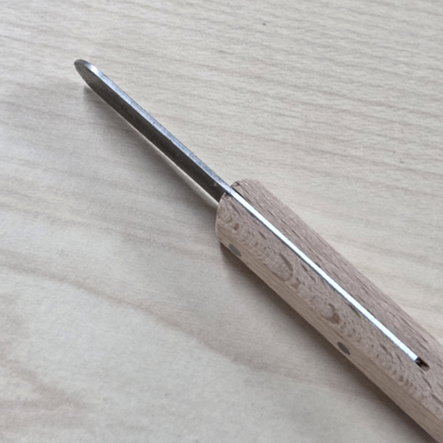 Professioneel mes met 40mm, C60 stalen lemmet en een afgeronde punt, om het onbedoeld beschadigen van de plant en / of vruchten te voorkomen. Het mes heeft een ergonomisch houten handvat, hout zorgt van nature voor een antislip structuur voor een goede en veilige grip.